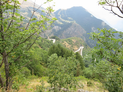 It cleared in the afternoon so I walked to the two miles or so to the top of the col before dinner. Here is the view back down to Le Rivier d'Ornan on the way up.